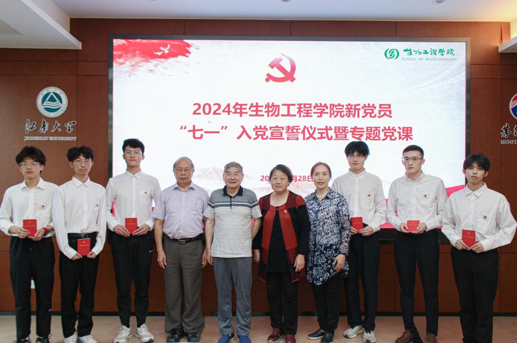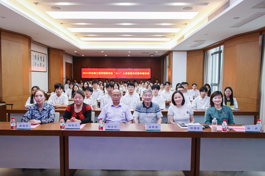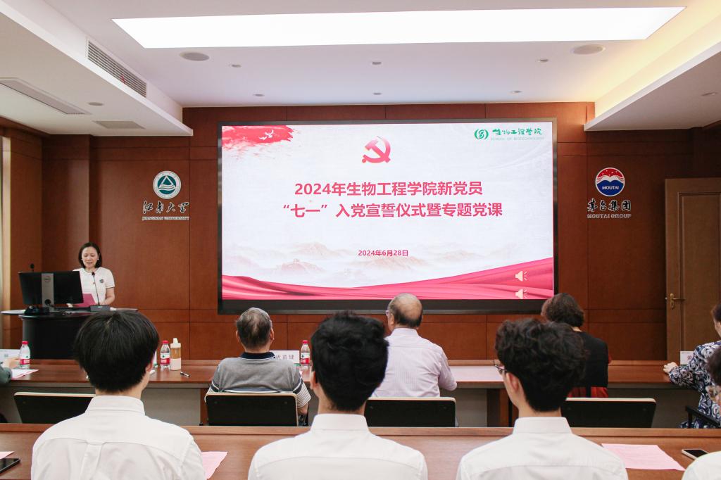 值此中国共产党成立103周年之际,为深入学习贯彻习近平新时代中国特色社会主义思想,教育引导新党员坚定理想信念、牢记初心使命,6月28日,生物工程学院举办2024年新党员“七一”入党宣誓仪式暨专题党课。生物工程学院关工委陶文沂、诸葛健、帅桂兰、黄艳芳,生物工程学院党委书记程捷音,学院辅导员老师以及新发展党员出席。活动由生物工程学院党委副书记、副院长林丹主持。