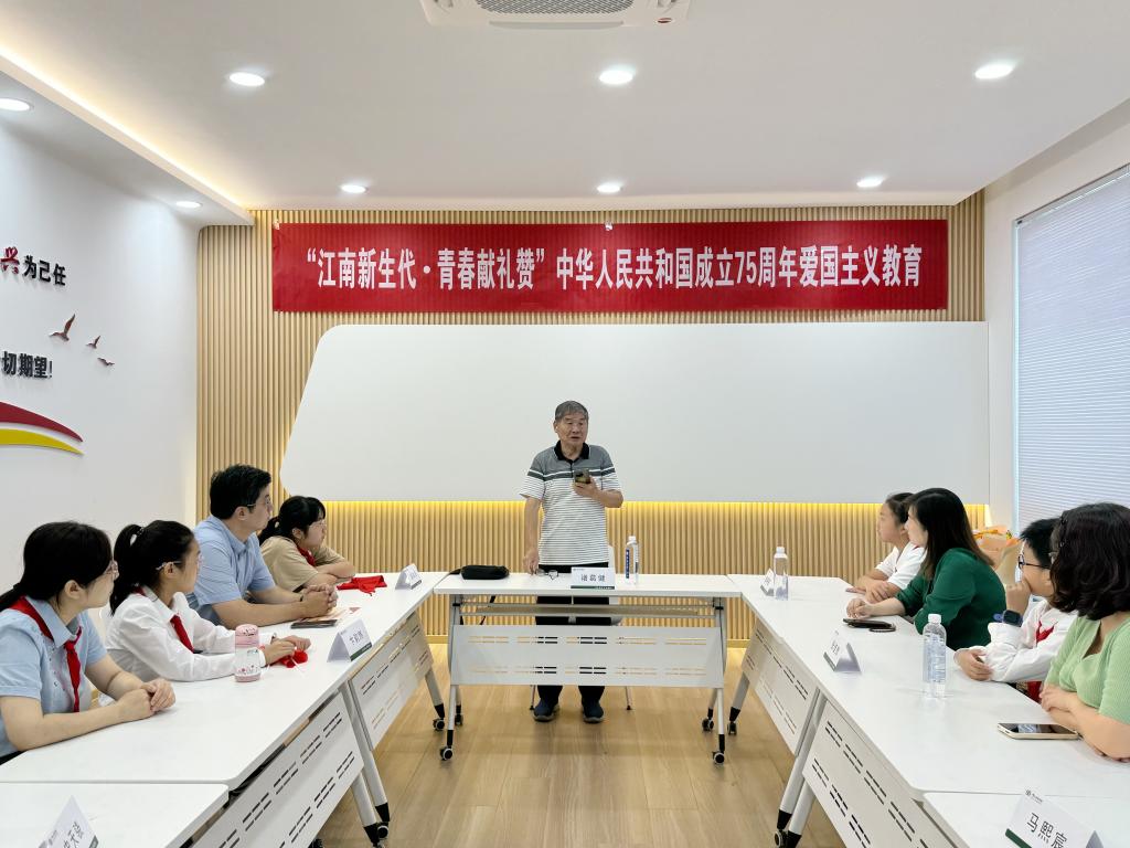 随后,“江南新生代,青春献礼赞”中华人民共和国成立75周年爱国主义教育在南区一站式活动中心开展。江南大学关工委特邀报告员诸葛健教授,生物工程学院党委副书记、副院长林丹,生物工程学院分团委书记兼学工办主任周春江,以及学院教职工及其子女代表参与活动。