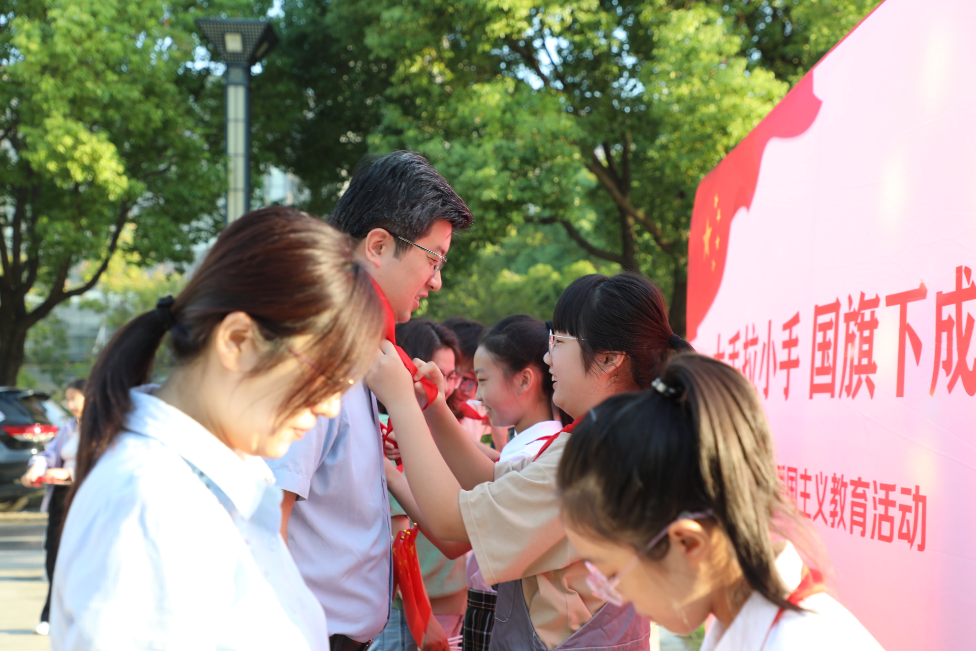 小朋友为家长敬献红领巾