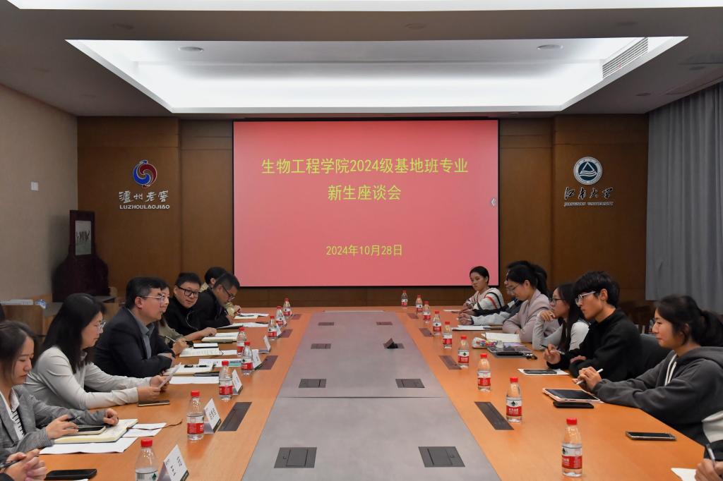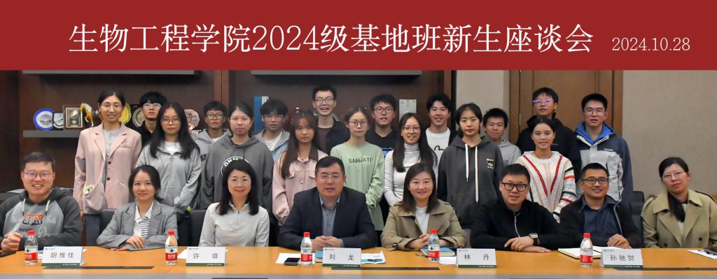 为深入了解和把握基地班新生思想学习状态,助力新生顺利适应身份转换,更好地融入大学生活,生物工程学院于前期充分调研学生的学习成长需求,并于10月28日在学院茅台厅召开2024级基地班新生座谈会,学院院长刘龙与基地班学生代表亲切座谈交流。学院党委副书记副院长林丹,基地班责任教授许菲,院长助理孙驰贺,基地班班主任吕成、龙凌凤,本科教学秘书胡惟佳,辅导员王珏出席本次座谈会。