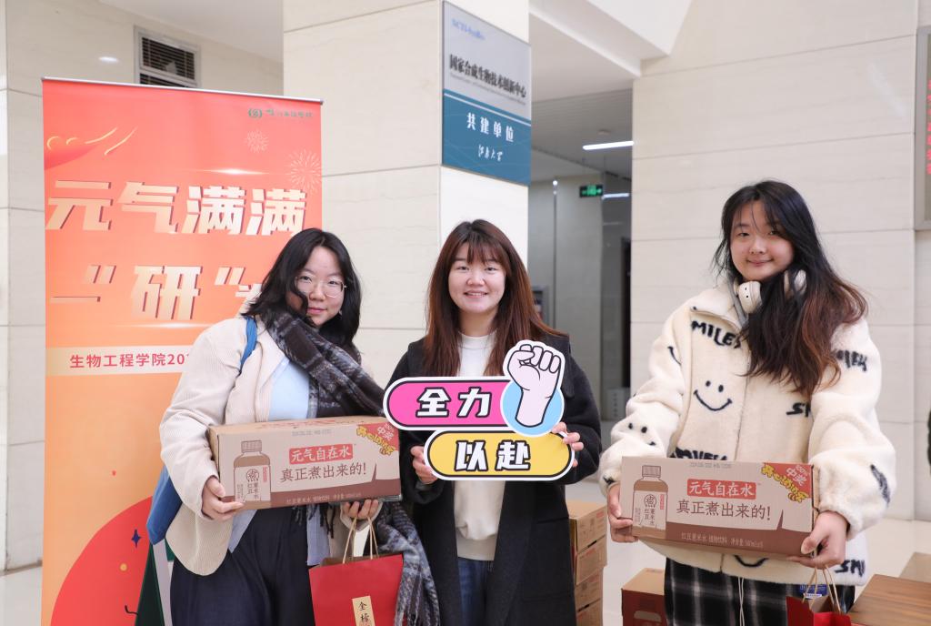 本次考研慰问活动,生物工程学院为考研学子精心准备了“元气满满加油包”,里面包含考研文具套装、维生素C、祝福卡片和一箱元气森林(气泡水/电解质水等)。每一份礼物都承载着深深的祝福和期待,助力每一个考研学子梦。收到礼物的同学们纷纷表示,学院的关怀让他们备受感动,也更加坚定了他们考研的决心和信心。