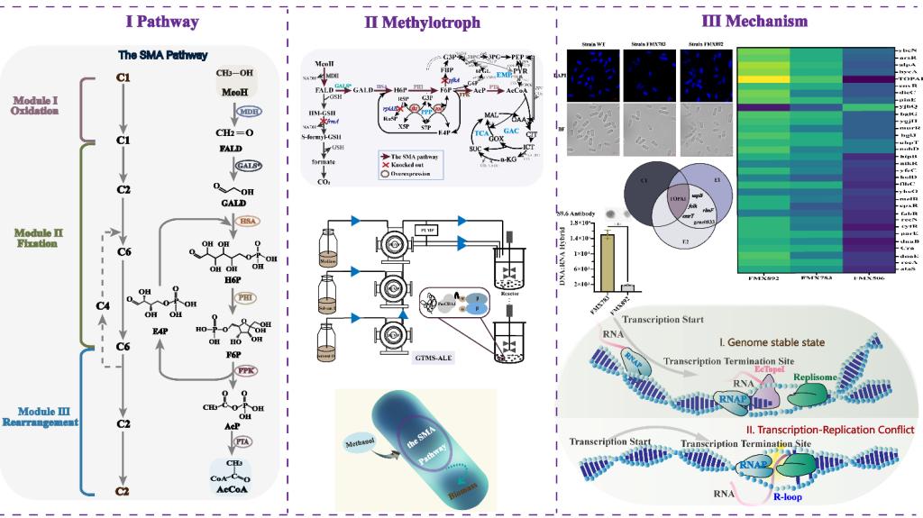 图:人工甲基营养菌的构建以及生长新机制解析示意图