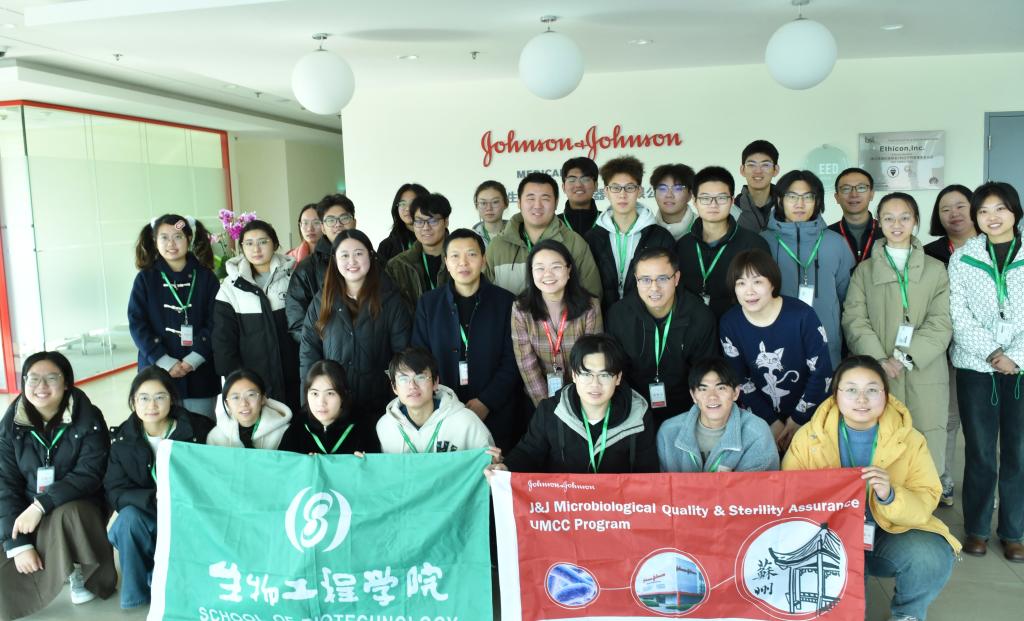 12月21日,生物工程学院与强生(苏州)医疗器材有限公司2024年校企合作课程(医疗器械和制药微生物学UMCC模块)结课仪式暨企业参访学习活动在强生苏州产业园进行。强生(苏州)医疗器材有限公司微生物质量和无菌保证总监刘雪美、公共关系和企业传播负责人黄茜、外科工厂生产经理莫钧年、微生物质量和无菌保证研究员胡瑜,生物工程学院副院长陈献忠、副教授郑飞云、辅导员刘洛君及课程班全体同学参加活动。活动由微生物质量和无菌保证实习生吴昊霖主持。
