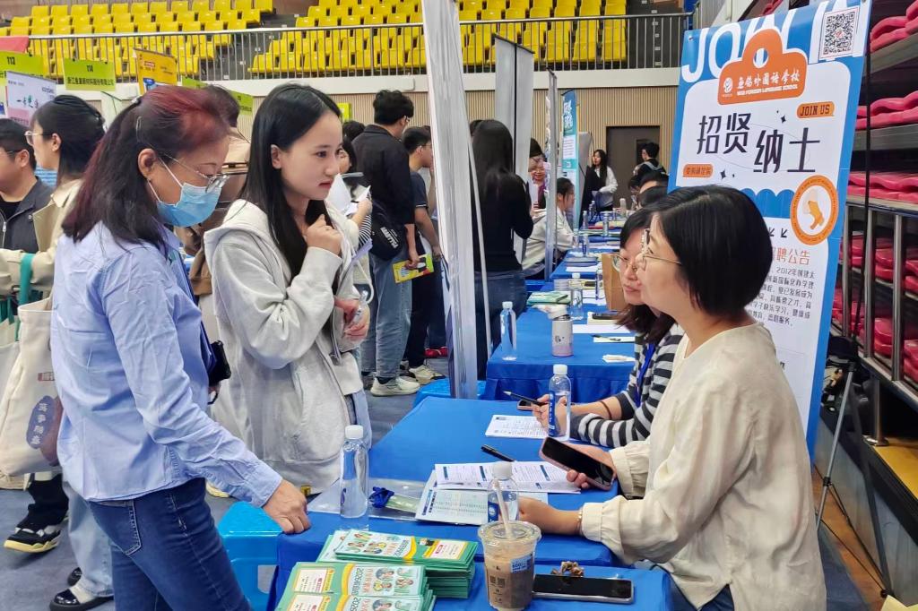 为扎实推进2026届毕业生就业工作,引导学生积极把握招聘机遇,10月19日,江南大学2026届毕业生秋季大型招聘会在学校体育馆顺利举行,外国语学院领导老师深入校园招聘会现场,助力2026届毕业生就业。
