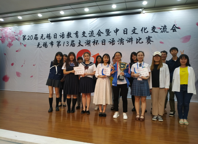该比赛本次大会由无锡市人民政府外事办公室、无锡市教育局、无锡市翻译协会等联合主办,上海日本国总领事馆、无锡日商俱乐部等单位协办。上午的交流会上,日语系学生陈霄和李欣凝的二重唱“マーリーゴールド”荣获一等奖。下午的比赛中,经过激烈的角逐,我校学生凭借精彩的演讲,流利的日语打动了评委老师。穆澜同学荣获本科组特等奖,王文汇、倪心喆同学荣获本科组一等奖。中西由美子、田村恭平、藤田美奈子三位老师也荣获优秀指导教师奖。