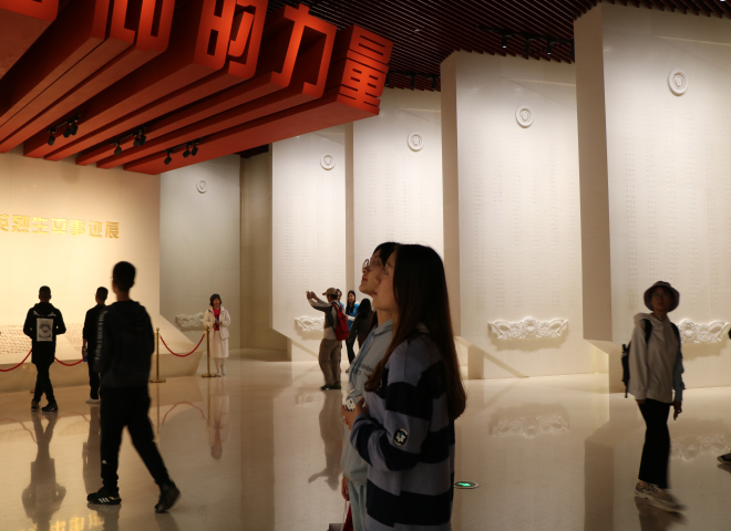 学生在雨花台革命烈士纪念馆学习