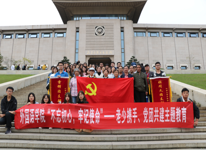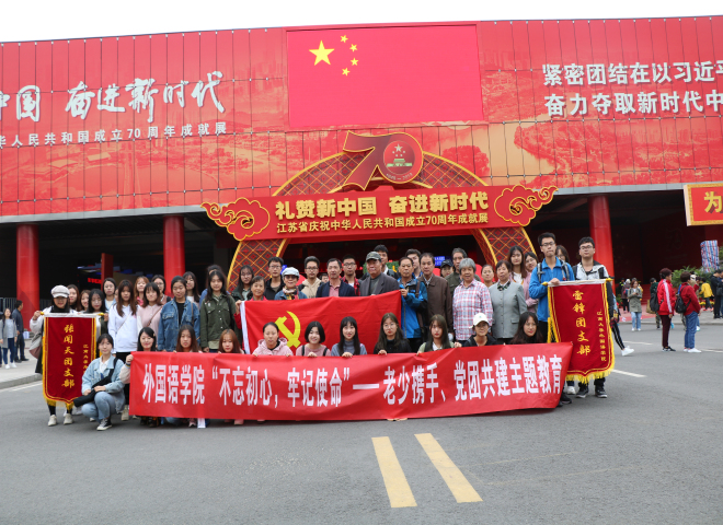 为贯彻党中央“不忘初心、牢记使命”主题教育工作会议精神,扎实推进党建带团建工作,10月26日,外国语学院张闻天特称团支部、雷锋特称团支部与结对共建的机关退休第四党支部、社桥退休党支部前往南京开展主题教育活动。