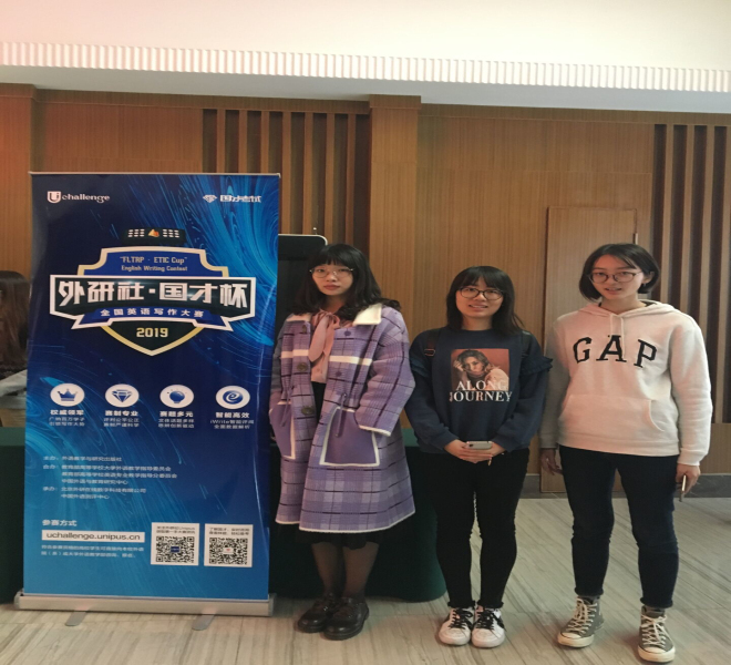 10月26日,2019“外研社国才杯”全国英语阅读大赛、写作大赛(江苏赛区)复赛分别在南京农业大学和南京林业大学落下帷幕。此次大赛,我校派出6名选手,由郑赛芬和宣泠老师带队,其中3名同学参加写作大赛与来自全省74所本科院校226名优秀选手同台竞技,3名同学参加阅读大赛与来自全省73所本科院校223名优秀选手进行切磋,最终5名同学凭借扎实的英语阅读基本功、丰富的知识量、突出的综合素质,斩获佳绩:外国语学院英语16级本科生左铭瑶以江苏省第一名的成绩获得写作大赛一等奖,她将代表江苏省参加12月举行的全国赛;外国语学院英语17级本科生童星如获写作大赛二等奖;化工学院19硕郑博文、外国语学院18硕郝香玉斩获阅读大赛一等奖、外国语学院英语17级本科生廖毓荷获阅读大赛二等奖。此次比赛我校学子能够在众多院校优秀学子的竞争中取得重大突破,展现了江南学子扎实的英语功底与水平。