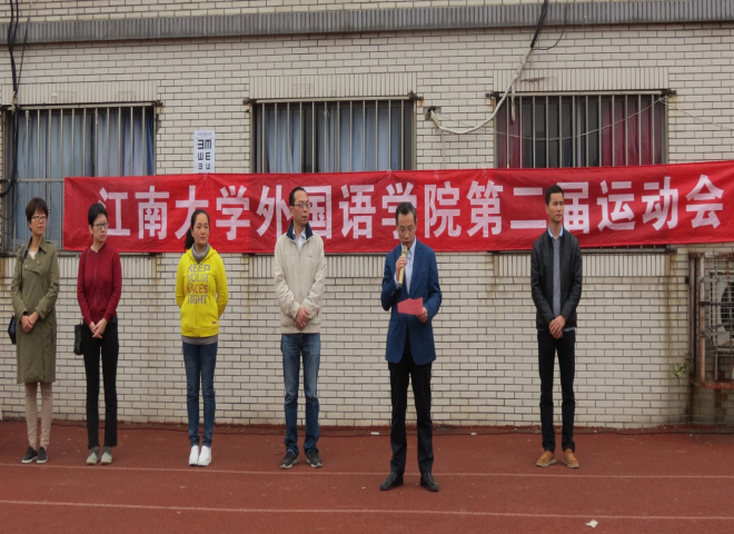 外国语学院院长方文开教授宣布江南大学外国语学院第二届运动会开幕。