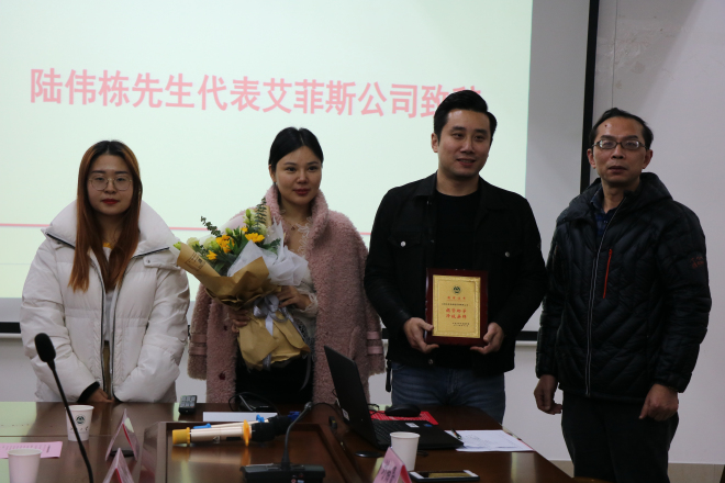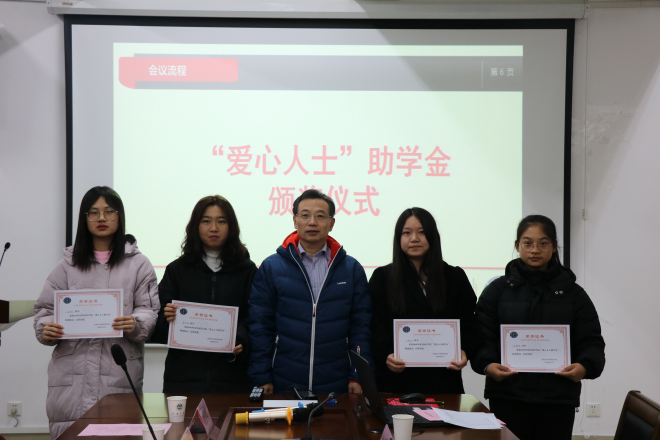 随后,方文开宣读了2019年外国语学院社会奖助学金获奖学生名单。陆伟栋先生为获艾菲斯奖助学生颁发荣誉证书,陈志刚先生和胡燕萍老师为获安达助学金学生颁发荣誉证书。黄城芳代表学院党委颁发“爱心人士”捐赠荣誉证书。