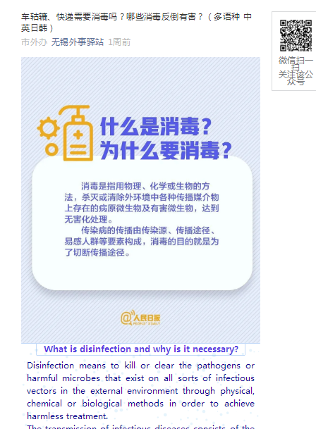 除了承担此书的翻译任务,谢瑜还担当了无锡市外办公众号的英文翻译任务。虽然线上教学和指导学生等“分内之事”已经很繁忙,但她认为比起那些勇赴一线的“白衣天使”,自己的这点付出只是略尽绵薄之力。