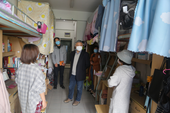 随后,徐岩一行来到澈苑公寓,亲切看望慰问了返校的学生,了解学生返校情况,询问她们返校后的学习计划、毕业打算,激励学生做好近期在校规划和毕业规划,以积极的心态面对疫情阶段的学习生活。