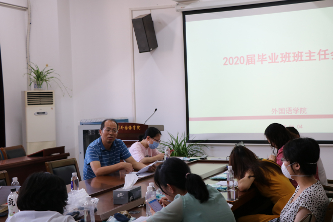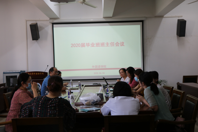 受疫情影响,2020届学生的毕业就业工作面临新的挑战。为进一步推进外国语学院毕业生就业工作,6月4日下午,外国语学院在A349会议室召开2020届毕业班班主任工作会议。学院党委副书记刘伯贤、学工办主任杨艳以及全体毕业班班主任参加会议。会议由杨艳主持。
