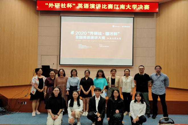 9月15日晚,“外研社·国才杯”大学生英语演讲比赛江南大学校选决赛在商学院远东报告厅举行。本次比赛由外国语学院学科竞赛办公室承办,吸引了全校近300名学生观看,评委团由外国语学院副院长谢竞贤副教授、魏文博士、许敏老师、钱薇薇老师以及外教Aidan组成。