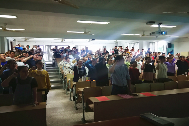 军训动员大会在庄严的国歌声中开始。首先韦红武为大家介绍了军训的重要意义和军训要求,韦老师强调:爱国爱军是青年学子深沉的情感,军训是一次难得的锻炼成长机会,大家要敢于吃苦,但过程中要注意安全。韦老师充满激情的动员讲话激发了大家军训的热情,更加坚定了同学们以高昂的斗志投身于此次军训的决心。接着刘伯贤介绍了当前的形势热点,重点强调了军训的重要性,他说:同学们通过此次军训磨炼自己的意志,将为以后的学习及生活奠定良好的身体素质及意志基础。同时刘伯贤代表学院对参加军训的学生们提出了三点期望:一提高意识,矢志报国;二严于律己,服从指挥;三顽强拼搏,收获成功。在介绍军训相关要求环节,杨艳讲述军训细则以及相关要求,并希望同学们认真对待此次军训,严格要求自己。最后,19级军训优秀学员赵秋棋分享了自己的军训感悟,为同学们提供了军训经验。