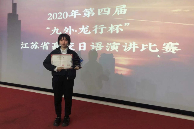 瞿菁同学荣获第四届“九外·龙行杯”江苏省高校日语演讲比赛二等奖