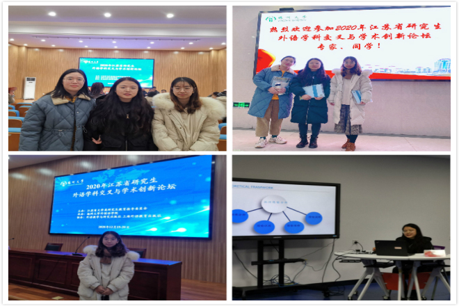 12月19日至20日,江苏省研究生外语学科交叉与学术创新论坛在扬州大学召开。本届论坛由江苏省文学类研究生教育指导委员会主办, 由扬州大学外国语学院承办。来自江苏省及长三角地区20余所高校外国语言文学学科90名博、硕士生与10余位带队老师出席了本次学术论坛。我校外国语学院19级三位研究生向俊蓉,朱春霞,方敏在孙志祥教授的带领下参加了本次论坛。