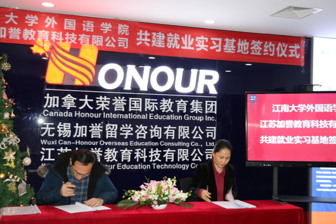 1月4日下午,外国语学院与江苏加誉教育科技有限公司共建学生实习基地签约仪式在江苏加誉教育科技有限公司会议室举行。学院院长方文开、党委副书记刘伯贤、副院长朱义华、江苏教育科技有限公司总经理孟丽敏、副总经理肖莉、教育专家Richard博士、教学总监Ruby老师参加了签约仪式。