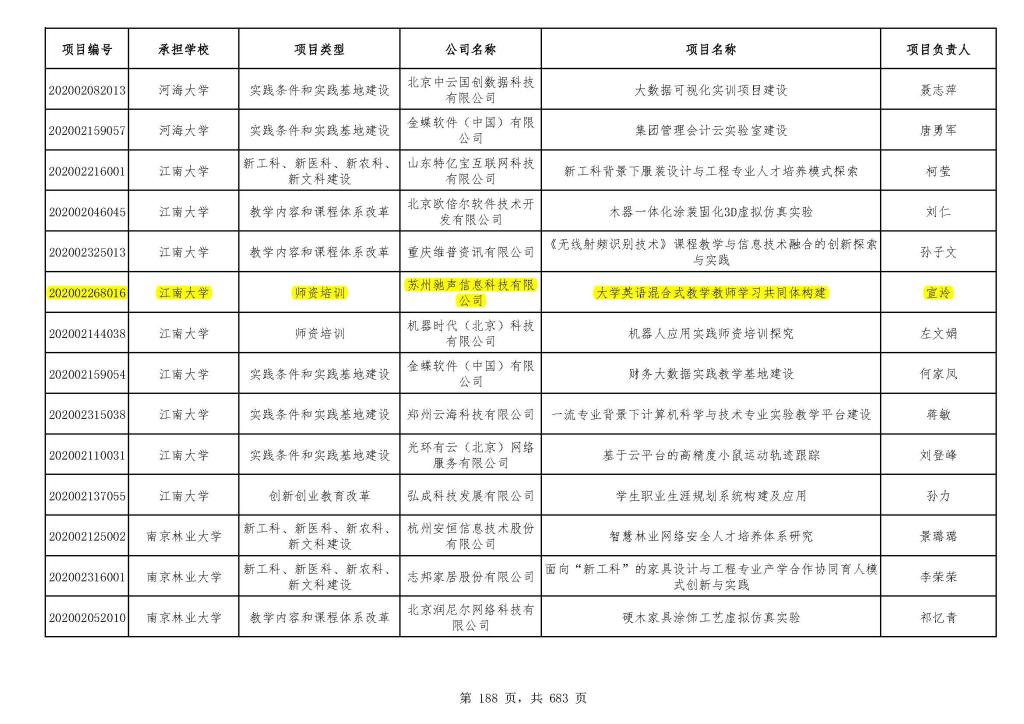 教育部2020年产学合作协同育人项目立项名单(部分)