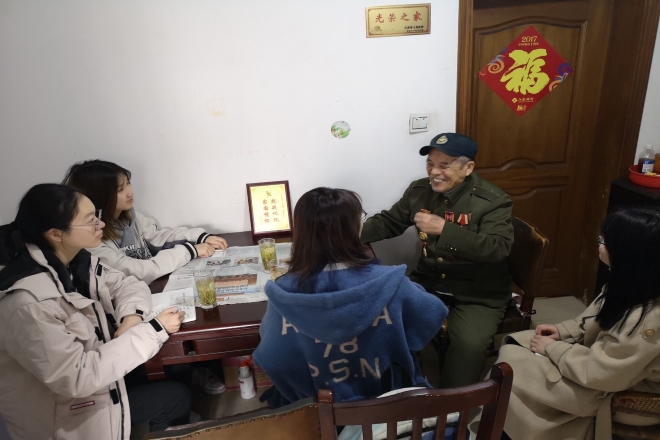 3月17日下午,外国语学院学生代表杨俊霞、徐昕、熊雪冰、揣皓博四位同学前往无锡市梁溪区看我校退休教职工许德山。学生代表为许老准备了慰问品,与许老进行了亲切的交谈,聆听许老抗战英雄事迹。