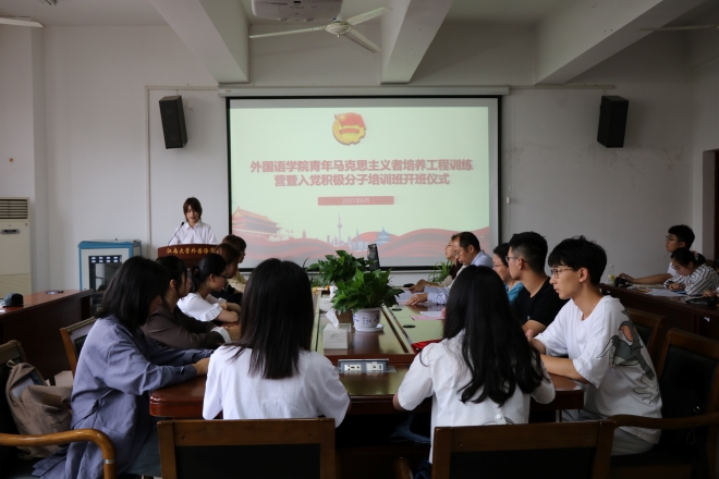 6月2日下午,外国语学院2021年青年马克思主义者培养工程训练营暨入党积极分子培训班在学院A349会议室举行。本次培训活动以“恰百年风华,担青年使命”为主题,外国语学院党委副书记、副院长刘伯贤,关工委委员郭锡华,分团委书记陆芳出席本次开班仪式,外国语学院2020级主要班团干部、推优对象参加了本次活动。