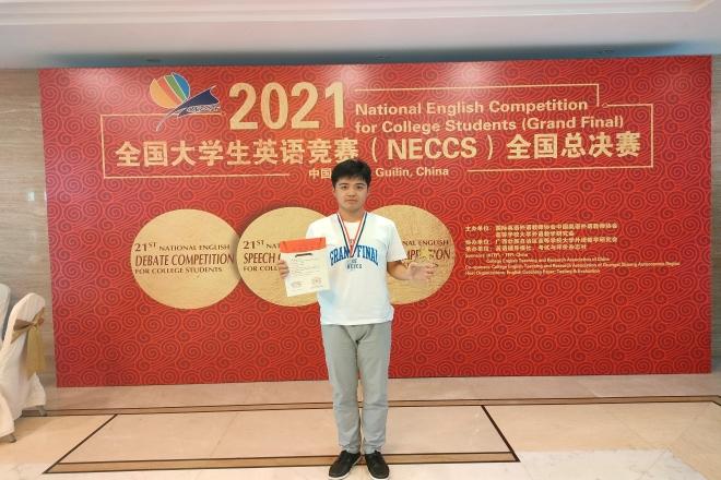 2021年全国大学生英语竞赛(NECCS)全国总决赛于8月2日至7日在广西壮族自治区桂林市举行。由外国语学院指导教师撒忠清、刘辉带领的五名江南学子充分发挥自身水平,经过激烈的角逐与层层筛选,在总决赛的各项赛事中取得了优异的成绩和诸多奖项。其中,商学院工业1902班韩赛鸿荣获演讲比赛一等奖、风采大赛二等奖以及优秀主持人奖,设计学院整创1901班张嘉珩获得演讲比赛二等奖、辩论赛三等奖、风采大赛优胜奖,化工学院19硕郑博文获得风采大赛二等奖、辩论赛三等奖以及优秀主持人奖,外国语学院英语1805班汪婕获得辩论赛三等奖、演讲赛三等奖及风采大赛优胜奖,商学院会计1902班陆李楠获得风采大赛三等奖及演讲赛优胜奖。