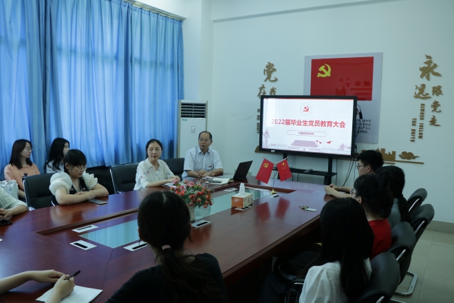 6月17日下午,外国语学院在A331举行2022届毕业生党员专题教育。学院党委副书记刘伯贤、分团委书记陆芳出席本次会议,全体本科生、研究生党员通过线上、线下结合的方式共同参与会议,会议由陆芳主持。