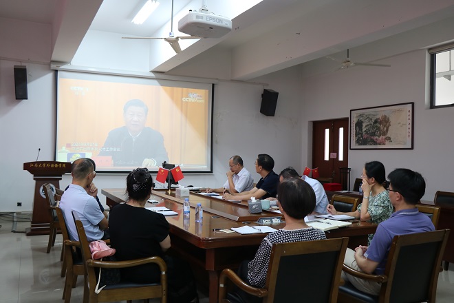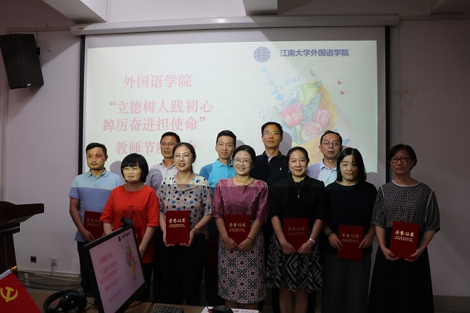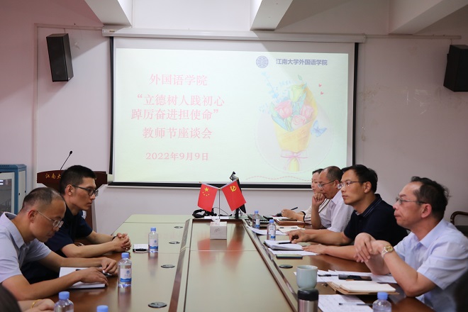 9月9日下午,为庆祝第38个教师节,外国语学院召开教师节座谈会,教师代表们欢聚一堂庆祝自己的节日。会上表彰先进,教师们分享教育经验,讲述教育感悟。新进教师、新晋升教师、获奖教师和学院领导班子参加会议。