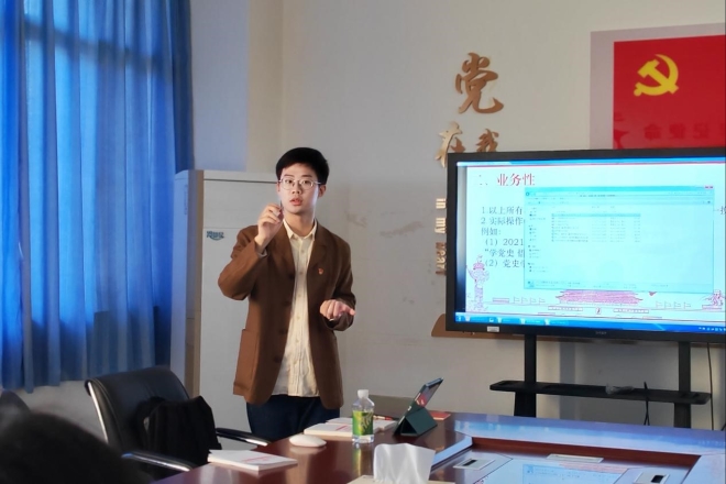 最后,张龙飞就自己多年担任党支书的经历向党员同志们分享了提升个人业务能力的途径与方法。作为党支书和党支委,组织策划、协调沟通、公文写作的能力必不可少。除此之外,张龙飞还提到,理论素养是一个年轻党员干部最根本的本领,提高党员理论素质必不可少。