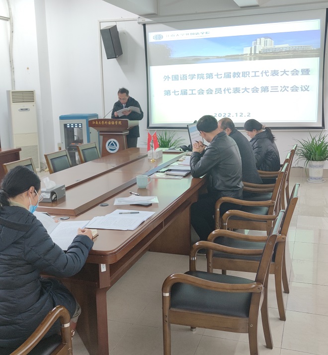 12月2日下午,外国语学院第七届教职工代表大会暨第七届工会会员代表大会第三次会议在文科楼A349成功召开。