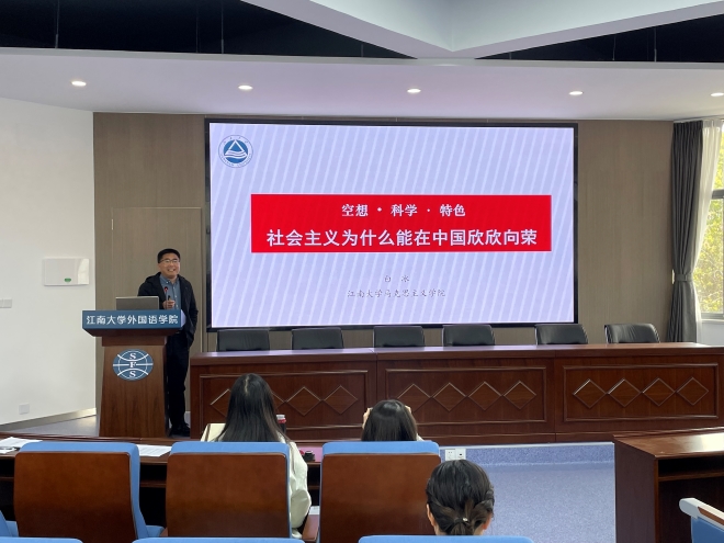 开班仪式结束后,由马克思主义学院白冰老师为大家带来开班第一讲《空想·科学·特色——社会主义为什么能在中国欣欣向荣》。白冰从四个方面,即社会主义从空想到科学、从理论到实现、从一国到多国、从传统到特色,一步步讲述了社会主义五百年的历史以及社会主义在中国的探索与建立,并明确指出,中国特色社会主义道路是创造人民美好生活、实现中华民族伟大复兴的康庄大道。在讲座的最后,白冰对青年同学提出了殷切希望,他表示青春孕育着无限希望,青年能够创造美好明天。