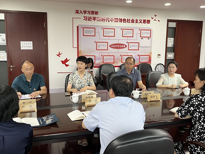 詹熠对外国语学院一行来访表示热烈欢迎,他指出,双方将围绕推动高等教育高质量发展和无锡外事工作高质量发展时代新课题,整合市校资源和党建资源,构筑上下相通、左右联动的党建工作网络,以“围绕目标抓党建、抓好党建促发展”为共建思路,推动双方在主题教育、实习基地、国际月活动等诸多方面的共建机遇,进一步开拓广阔合作空间。