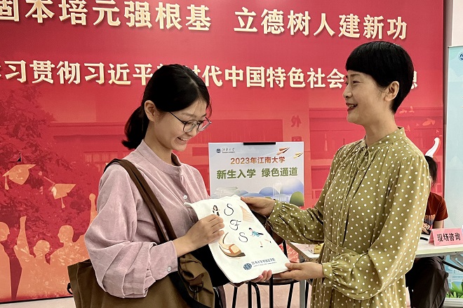 本次迎新主题为:“译”丝期待,共“语”江南。学院大厅同时设置四条新生报到通道以及一条绿色通道,楼前摆放签名墙、优秀学子风采展、外院学子升学榜等。除此之外,学院精心准备定制帆布袋,编纂印制《江南大学外国语学院优秀学子宣传册》《2023年外国语学院本科新生日程安排》,帮助新生快速了解近期活动安排,为同学们更好适应校园生活、融入外院大家庭提供宝贵的契机与平台。