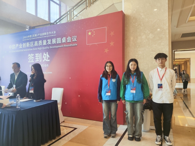 11月8日,2023中欧(无锡)产业创新合作大会在君来世尊酒店会议中心顺利召开。本次大会以“深化中欧合作,实现互利共赢”为主题,旨在积极推动中欧企业在科技、产业、教育、园区建设等方面展开深度合作。为保障大会顺利进行,外国语学院积极组织50名志愿者参与大会的志愿服务保障工作。