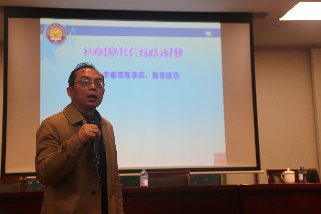 首场讲坛的主讲人是国防科技大学教授、博士生导师方成,他讲座的题目为“十九世纪美国改革文学之思想维度与叙事艺术”,讲座主要包括三个基本概念、两大核心问题、五项改革思想与实践高度、十大类改革叙事艺术,方成强调当代文学批评理论就是当代西方文学改革批评理论。此外,他还对到场的所有老师和同学提出了“学者志在求真,旨在证伪”的宝贵建议。