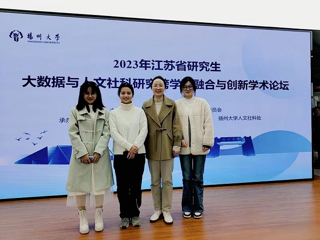 12月9日,江苏省研究生大数据与人文社科研究跨学科融合与创新学术论坛在扬州大学召开。本届论坛由江苏省文学类研究生教育指导委员会主办,扬州大学承办。来自省内10余所高校的49名硕博研究生与带队教师共同出席了本次学术论坛。外国语学院2022级研究生王婷以及2023级研究生方漩和胡婷婷在副院长谢竞贤的带领下参加了本次论坛。
