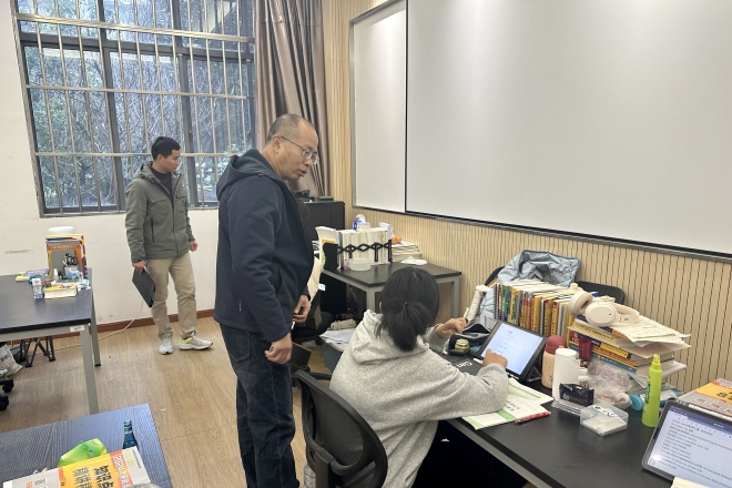 为了及时掌握学生学习生活情况,保证教学质量,扎实推进优良学风建设,强化课堂教学管理,提高课堂学习效率,近期,外国语学院党委书记李荣华、党委副书记兼副院长刘伯贤带领学院教务、学工老师深入课堂、学生自习室、学生宿舍开展“学风建设与安全稳定”检查工作。
