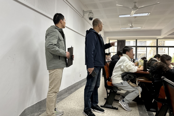 学院领导老师对学生上课出勤情况及听课状态进行了检查,通过核实课堂出勤人数,检查课堂纪律,与任课老师沟通交流等途径,全面掌握学生的学习情况。课间休息时间,辅导员再次嘱咐学生要按时到达课堂,遵守课堂纪律,提高听课效率,共同营造良好的学习氛围。在学院自习室,学院领导提醒大家用电安全,注意开窗通风,在和备考学生交流中,鼓励大家树立信心,劳逸结合。