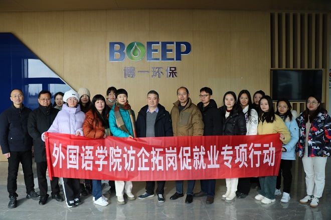 为深入落实教育部及江南大学有关就业创业工作文件精神,全面深化院企合作、供需对接,拓宽就业渠道,深挖岗位资源,扎实推进外国语学院“访企拓岗促就业”专项行动,1月22日,外国语学院党委书记李荣华、党委副书记兼副院长刘伯贤、英语系主任杨勇、教授袁雪生、教师胡燕萍、学院分团委书记顾海星、教务办主任王琰玲、辅导员苗文建、朱家烨等人赴扬州市邗江区杨庙镇开展访企拓岗走访调研活动。