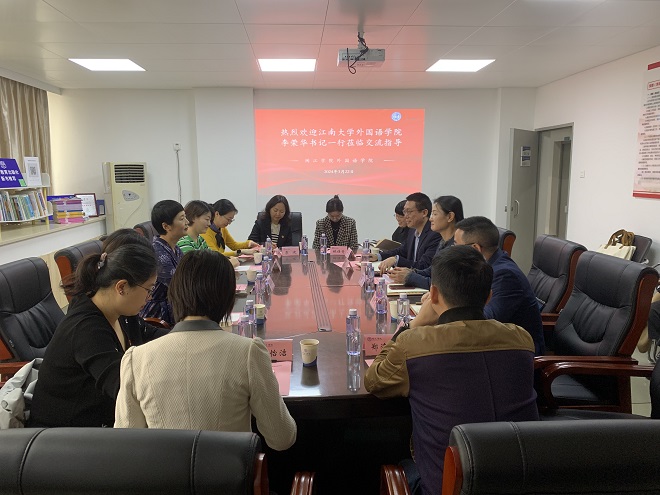 3月22至23日,外国语学院党委书记李荣华、副院长顾琦一和院系部主任、支部书记一行7人应邀前往闽江学院外国语学院开展党建共建联学和课程思政研讨交流。闽江学院外国语学院党委副书记(主持工作)郭崚、院长陈洪富、副院长雷阿勇、团委书记郑海锋以及教师代表参加了联学研讨。