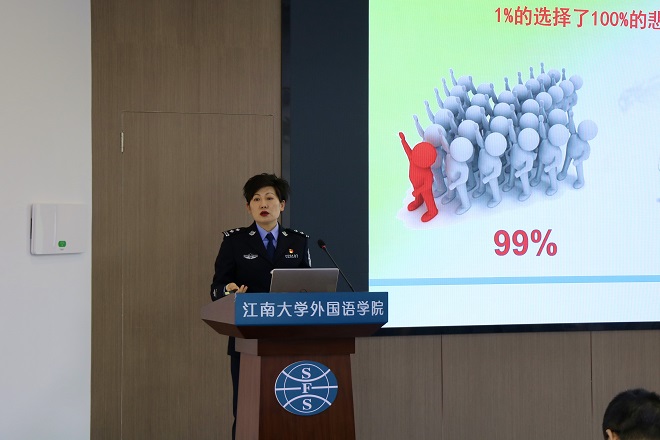 为深入学习贯彻总体国家安全观,进一步提升大学生安全意识和法制观念,筑牢校园无毒安全防线,同时扎实推进心理四级网络工作机制,充分发挥宿舍心理联络员在心理健康教育工作中的作用,守护学生身心健康,4月10日,外国语学院开展“举起心理盾牌 抵御毒品诱惑”国家安全教育主题活动。无锡市公安局禁毒支队警官陈丽丽、外国语学院分团委书记顾海星、辅导员朱家烨、宿舍心理联络员代表及其他学院部分学生到场参加,活动由吴彤同学主持。
