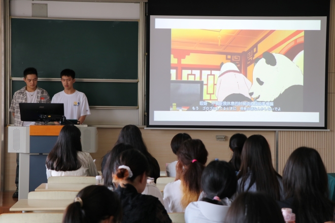 决赛于5月22日下午在第二教学楼举行,分为日语赛道配音、英语赛道配音、评委点评三个环节。本次大赛邀请到了无锡新东方前途出国的李天怡、柏冬东老师担任决赛主评委,江南大学“十佳大学生”苏婷、外国语学院学生会执行主席曾欣谊担任学生代表评审。本次决赛配音内容选材联通中外,内容活泼,寓意深刻。日语赛道的参赛队伍选择对中国史剧进行翻译与配音,将中国元素融入配音作品,充分展现外语人的历史担当;英语赛道的参赛队伍以流畅生动的语音语调为我们带来一场绝佳的视听盛宴,一人分饰多角,为原作赋予全新的表达与生机。