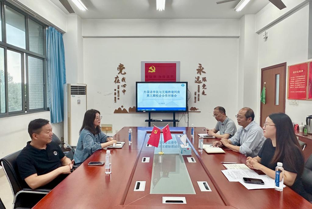 6月21日上午,外国语学院和无锡跨境网商商会第三期校企合作对接会在外国语学院331会议室举行。学院党委副书记、副院长刘伯贤,外国语学院英语系主任杨勇、外国语学院分团委书记顾海星、无锡跨境网商商会执行会长杨春怡、组织发展部部长刘利冰和学生代表参加了本次对接座谈会。