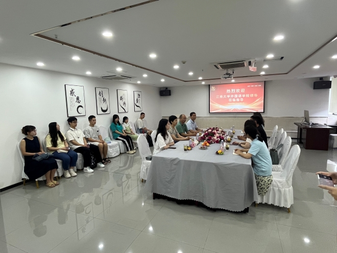 为深入贯彻落实党中央、国务院关于高校毕业生就业工作的决策部署,根据《江南大学2024年大学生就业工作实施方案》要求,7月11日上午,外国语学院党委书记李荣华、党委副书记刘伯贤、辅导员苗文建、朱家烨以及研究生、本科生代表前往无锡妮茜雅电子商务有限公司开展访企拓岗促就业专项活动。