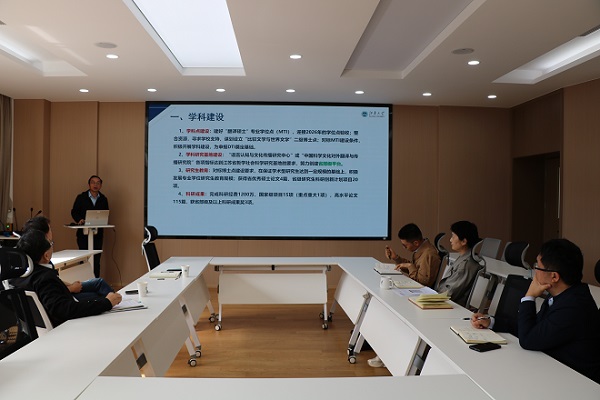 会上,李荣华汇报了学院党委全面从严治党工作情况。学院院长方文开从学院概况、困难困境、未来规划三个方面作汇报,围绕学科建设、大外改革、师资队伍、科学研究、人才培养等重点展开阐述,并汇报了发展思路。与会其他领导分别围绕科研管理和学生工作等方面进行了汇报。
