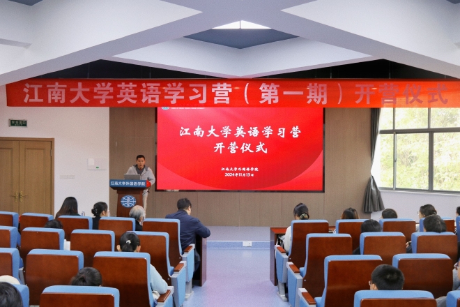 为加强学校学风建设,发挥朋辈教育引领作用,帮助各学院同学提高英语学习能力,依托学院学科优势,外国语学院面向全校学生组织开展江南大学英语学习营。11月13日,英语学习营第一期开营仪式在君金报告厅举行,外国语学院原院长、学院关工委报告员董剑桥,学院党委副书记、副院长季王飞,江南大学学工处学习发展中心正科级干部杨艳,学院分团委书记顾海星,辅导员苗文建出席开营仪式。活动由学生会主席李烽毅主持。