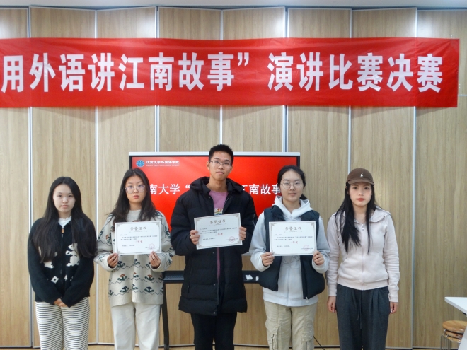 该赛事初赛采取线下定题式演讲,题目为“我眼中的江南”,限时三分钟。比赛按照日语组,非语言专业组,英语组的顺序进行,选手采用英语、日语讲述了他们眼中的“美丽江南”;决赛的比赛形式为线下半命题式演讲,题目为“江南的”,限时三分钟。江南的美景、成就、精神等通过选手的语言精彩呈现,不同语言的交融间展现了江南的光辉岁月,同时展示青年学子的别样风采。最终根据赛场表现,经过评委商榷讨论:英语2402吴远庆、法学2303张佳夷、日语2301周宇静荣获一等奖。江南的故事,是每一位江南人的骄傲,江南的精神更是我们共同的财富,江南大学“用外语讲江南故事”主题演讲比赛经过两周的激烈角逐圆满结束。