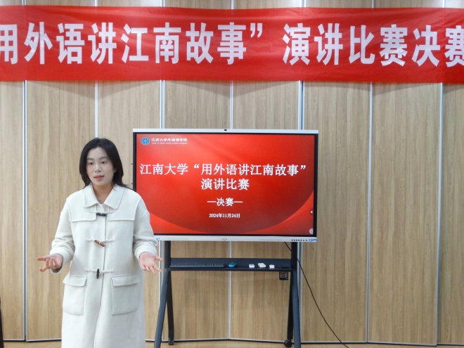 为庆祝江南大学建校六十六周年,激发广大学生发扬“笃学尚行,止于至善”的校训精神,增强爱校荣校情感,同时浓厚校园外语学习氛围,外国语学院面向全校同学组织开展“用外语讲江南故事”主题演讲比赛。经过前期报名,初赛评选,共有32名选手进入决赛环节,决赛于11月24日在南区“一站式”学生活动中心举行。