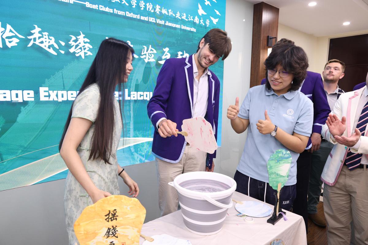 中外学生共同参与非遗漆扇绘制