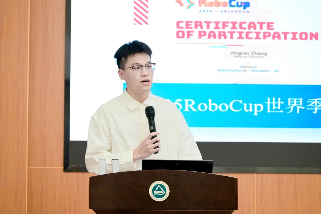 张景然同学(推免至浙江大学)以RoboCup仿真足球机器人世界赛季军的优异成绩,诠释了“长期主义”的价值。他深入分享了担任机器人俱乐部部长、竞赛指导员的组织经验,以及在强化学习和动态规划的策略等关键技术开发的新探索,并展示了在过程控制期刊和机器人顶会上发表的科研成果,彰显了持续深耕所带来的专业高度。